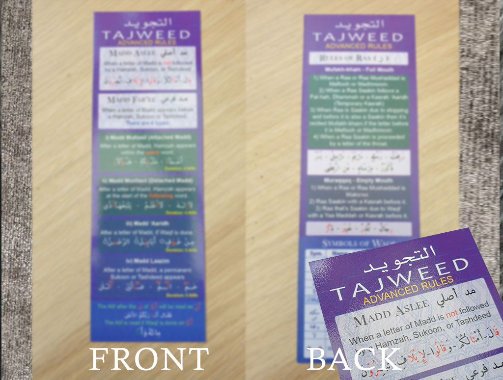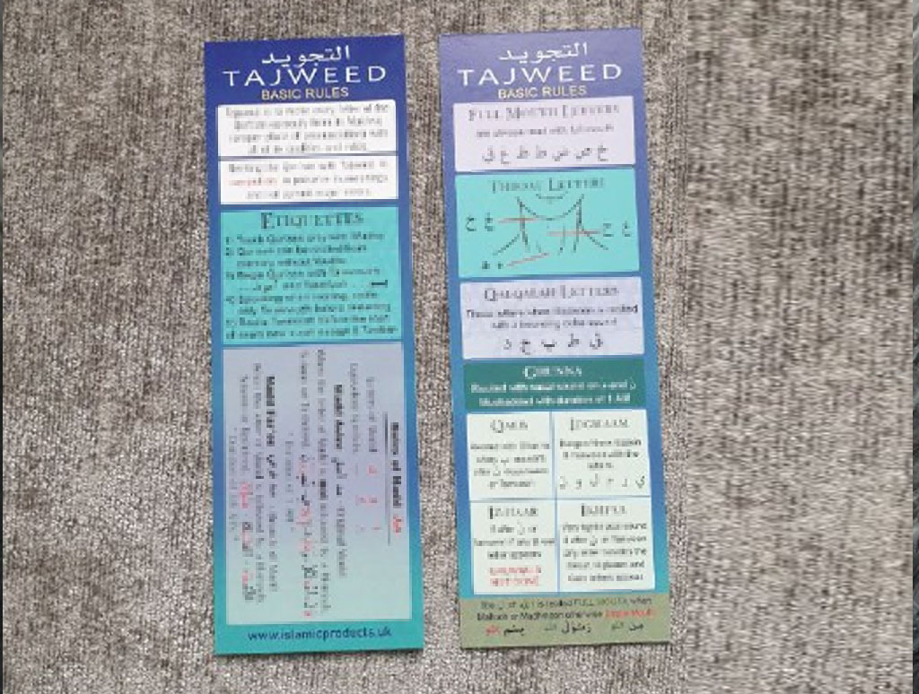 A must have for everyone. Tajweed Rules Bookmarks for the Qur'aan.